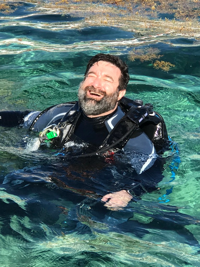 Jon grew up in New Hampshire and enlisted in the US Army in 1988. He graduated from the University of Alaska-Anchorage. He started diving recreationally in the late-90’s, while completing the “James Bond Challenge” of being an avid climber, diver, skier, marksman, pilot, and parachutist. He retired from the Army in 2012, grew a beard, gained the name “Grizzly Jon”, and has since shared his passion for diving whenever and wherever he wants. He became a PADI professional in 2014 and has worked as a Divemaster/Instructor on dive boats in the Bahamas, Mexico, Belize, Honduras, Florida, and California. Jon can instruct in multiple dive specialty courses and teaches offshore/wilderness emergency medicine under Emergency First Response (EFR) (CPR/AED/Adult and Child Care) and Divers Alert Network (DAN) (Prepared Diver, CPR Health Care Provider with AED, Basic Life Support: CPR and First Aid, First Aid for Hazardous Marine Life, Neurological Assessments, Diver Emergency Medical Provider (DEMP), Diving First Aid for Dive Professionals (DFA Pro)). PADI Specialty Certifications: Equipment Specialist Instructor Deep Instructor Fish Identification Instructor Underwater Naturalist Instructor Wreck Instructor Boat Instructor Delayed Surface Marker Buoy Instructor Drift Instructor Emergency Oxygen Provider Instructor Enriched Air Instructor Care for Children w/AED Instructor Peak Performance Buoyancy Instructor Project Aware Instructor AWARE Shark Conservation Diver Instructor AWARE Coral Reef Conservation Sp Instructor.